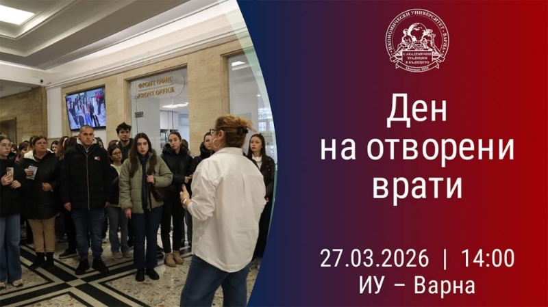 Присъствен Ден на отворени врати за кандидат-студенти, техните семейства и приятели ще се проведе на 27.03.2026 година (петък) от 14.00 ч. в Икономически университет – Варна (академична сграда на бул. „Княз Борис I“ 77).